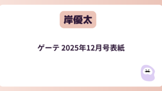 岸優太 岸優太 ゲーテ 2025年12月号表紙 本ページにはプロモーションが含まれています 岸優太くんが『ゲーテ』の表紙に初登場!特集テーマにあわせたスペシャルインタビューを含む、10ページにわたるカバーストーリーが掲載されています。 岸くんの新たな魅力をたっぷり堪能できる内容になってい... 2025.09.30 岸優太