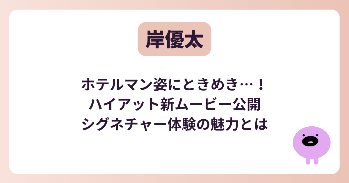 岸優太、ホテルマン姿にときめき…!ハイアット新ムービー公開&シグネチャー体験の魅力とは